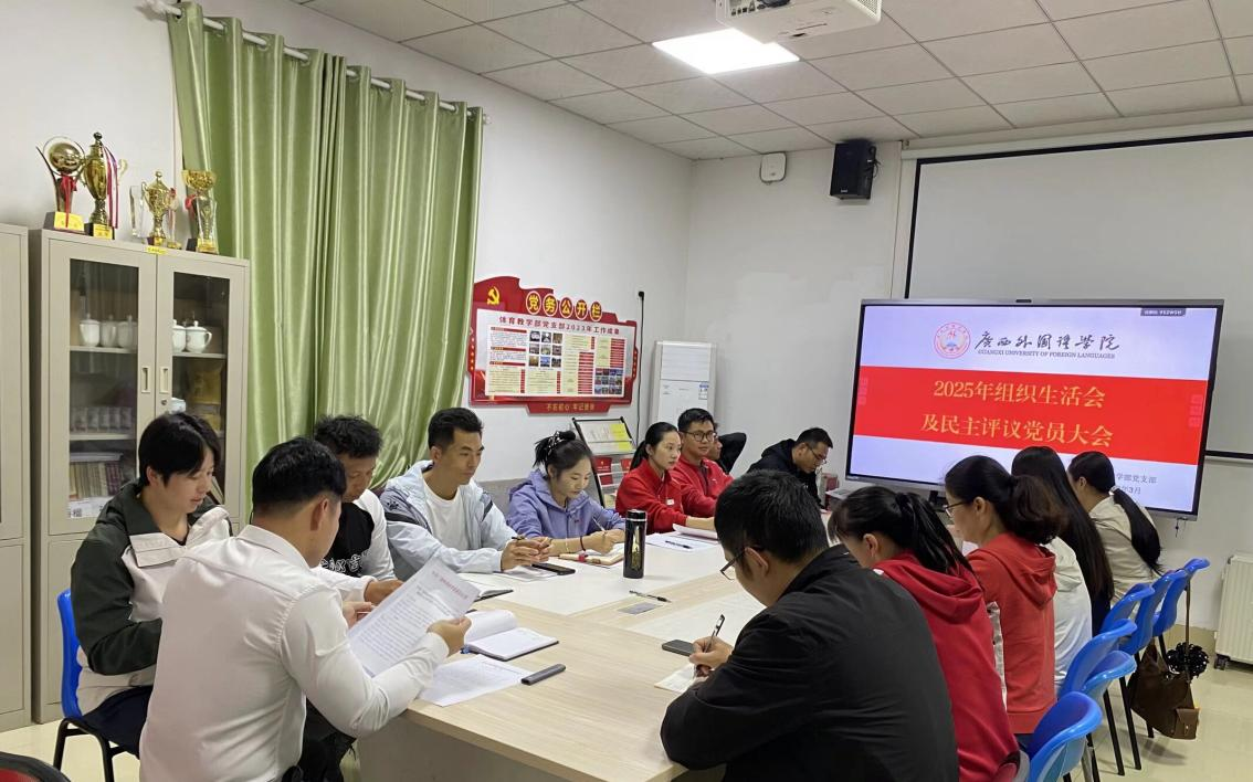 为深入贯彻落实上级党组织关于组织生活会和民主评议党员工作的部署要求,切实强化党员党性修养,以高质量党建引领学校体育事业高质量发展,2026年3月17日,广西外国语学院体育教学部党支部召开2025年度组织生活会及民主评议党员大会。会议由党支部书记宾冬松同志主持,学校党委副书记钟志锋同志以普通党员身份参会。
