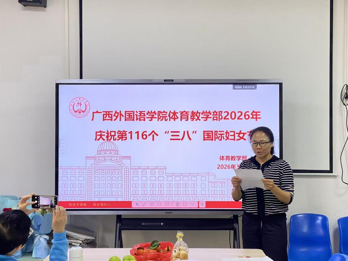随后,覃圆老师作为女教师代表上台发言。她结合自身教学工作与成长经历,深情分享了在体育教育岗位上的坚守与感悟,由衷感谢部门长期以来对女教职工的关心、培养与支持。她表示,将以此次节日为新起点,继续秉持立德树人根本任务,深耕体育教学一线,不断提升专业素养与教学能力,以更昂扬的姿态、更务实的行动投身体育教育事业。